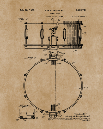 They are patents of a Snare Drum, Drum Cymbals, Drum Kick Beater.